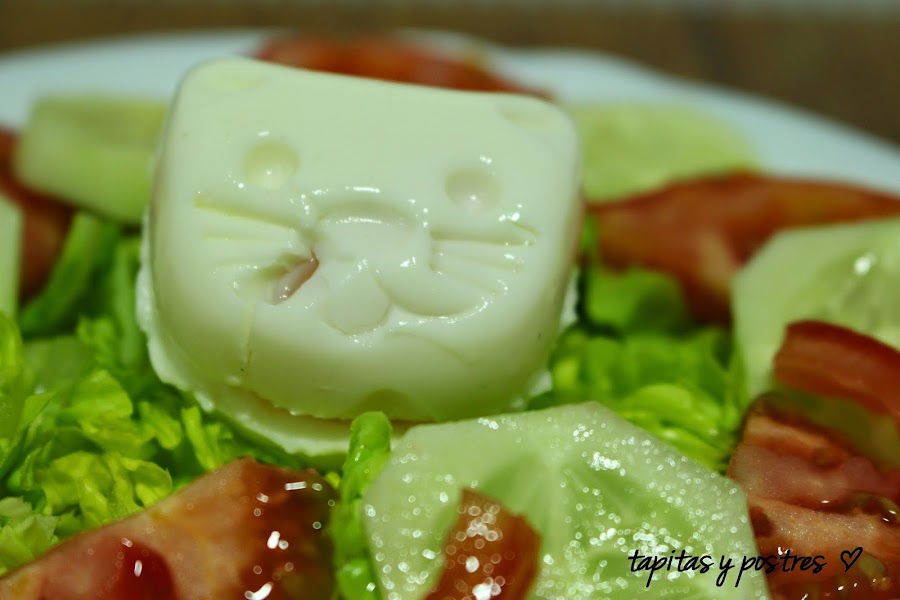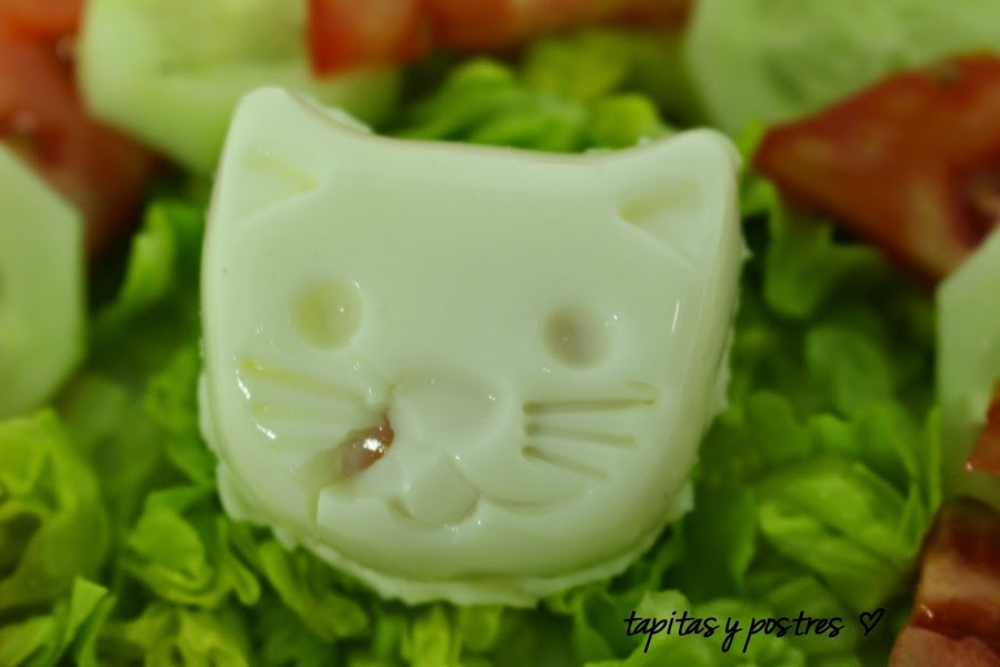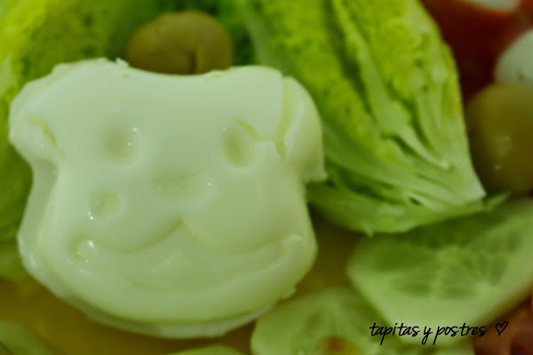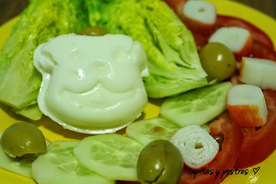 Elegid los ingredientes que más os gusten y adornad la ensalada con esta monería (nunca mejor dicho).