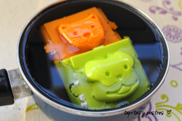 Una vez cerrados los moldes, los ponemos en agua fría un rato para que se enfríen. Una vez frío, los metemos en la nevera una hora.