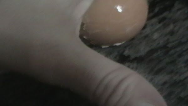 Con los dos extremos golpeados..... le daremos unas vueltas sobre el marmol presionando un poquito, veremos que la cascara se resquebraja.......