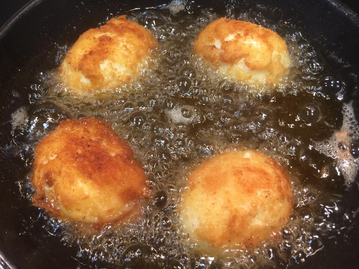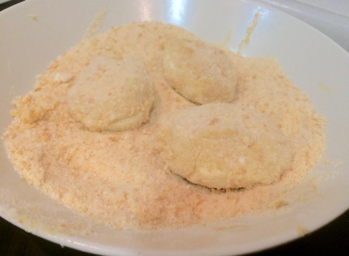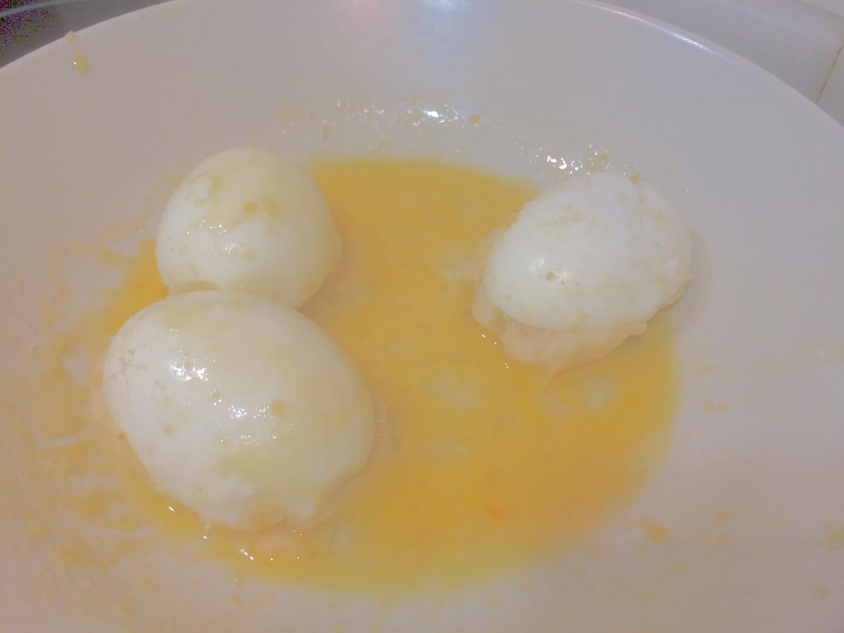 Cortar los huevos por la mitad y poner bechamel por encima.