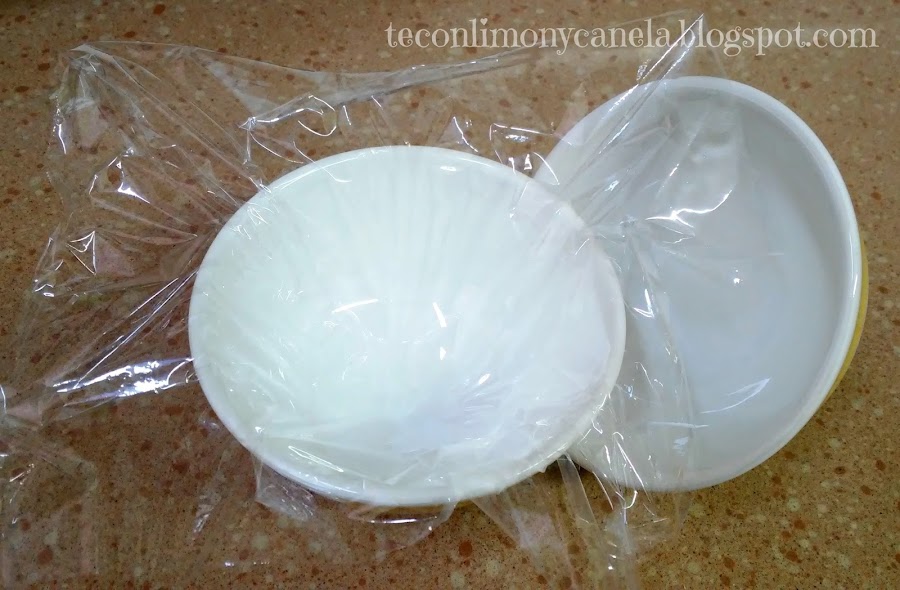 Preparamos un cuenco (o varios, si lo hacemos en cadena), forrándolo con un trozo de film.