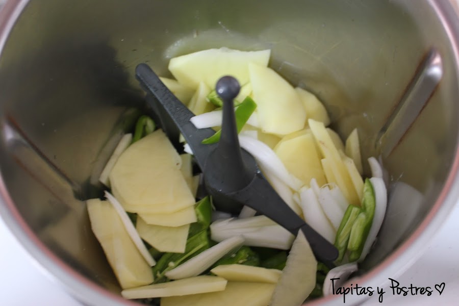 Ponemos en el vaso de la thermomix el aceite y calentamos tres minutos a 100º y velocidad 1.