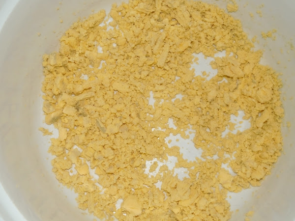 2)_Después de quitarles la cascara,córtalos a la mitad y retira la yema colocando en un bowl limpio.Pisa las yemas con ayuda de un tenedor hasta que queden sin grandes grumos.