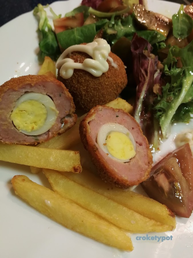 Un plato que nos sirve tanto para un aperitivo como para una cena, son los huevos escoceses, a los niños les encantan, con su mayonesa, kétchup, salsa barbacoa o mostaza, sus patatas fritas y ensalada y quedan genial.