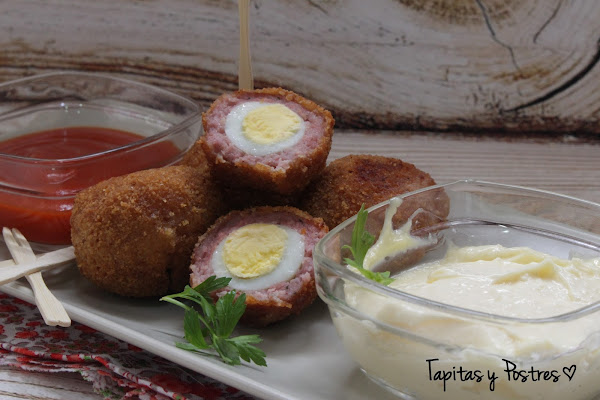 Hace muchos años probé una vez este plato. No sabía que se llamaban "huevos escoceses", lo que si recuerdo es que me costó Dios y ayuda acabarlo, porque estaban hechos con huevos de gallinas, y con una capa de carne muy gruesa, con lo cual, te comías uno y estabas lista hasta el día siguiente.
