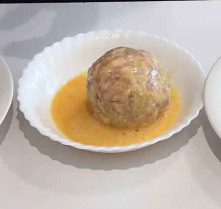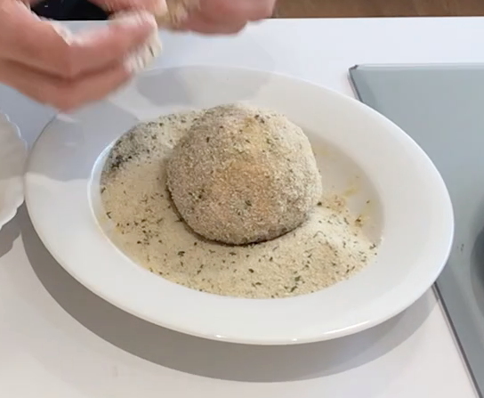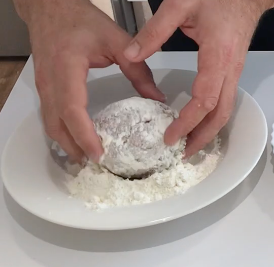 Pasamos la albondiga por harina.
