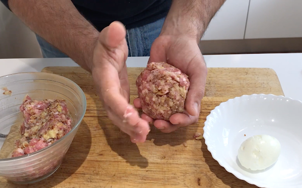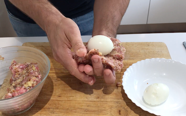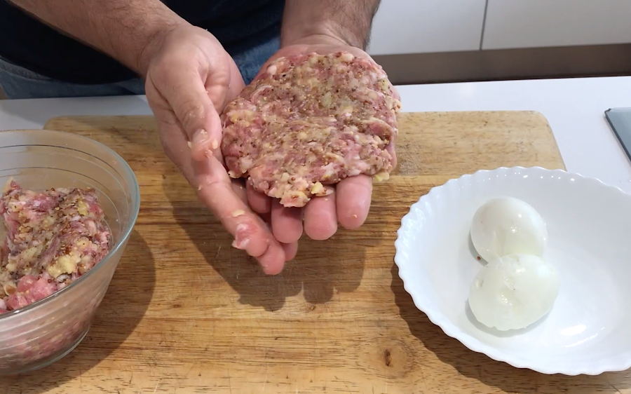 Empezamos a cubrir el huevo con la carne picada.