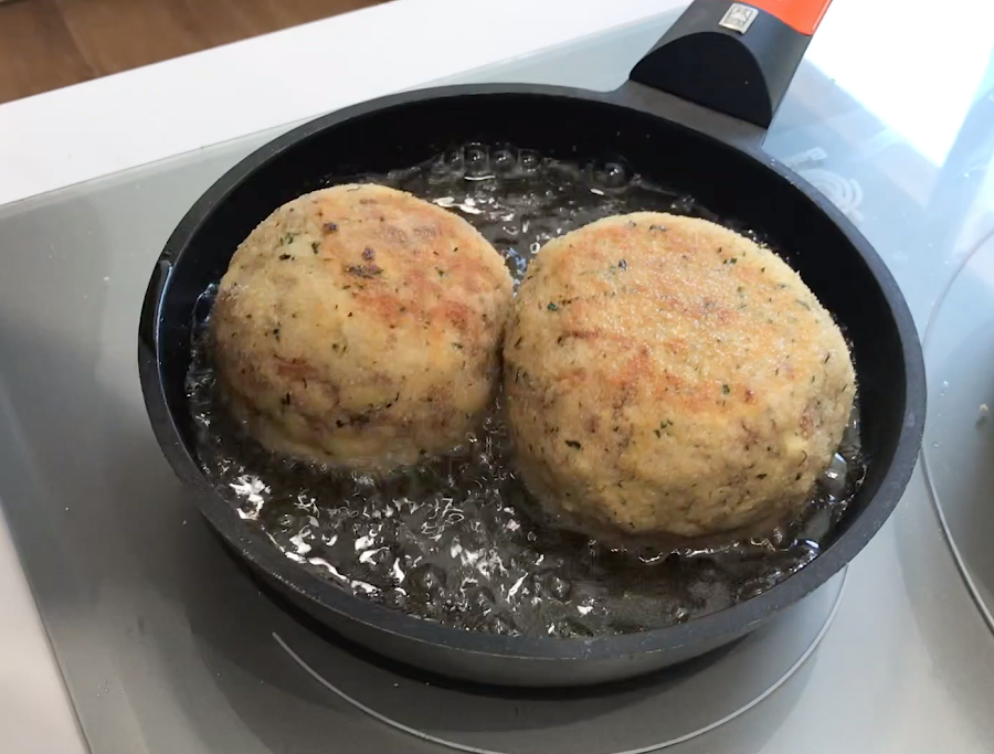 Freímos en aceite de girasol caliente.