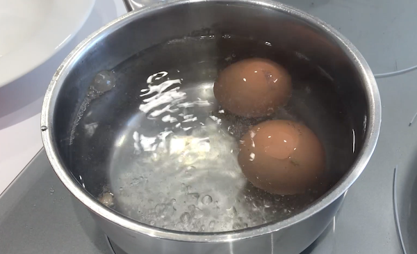 Empezamos cociendo los huevos, el tiempo adecuado son 6 minutos una vez el agua rompe a hervir, es importante que los huevos no se rompan, para ello yo empleo abundante sal y un chorrito de vinagre.