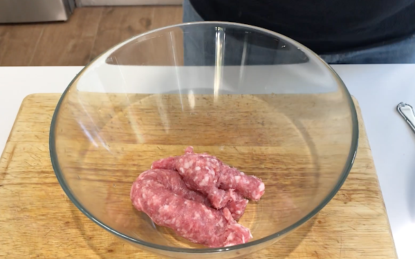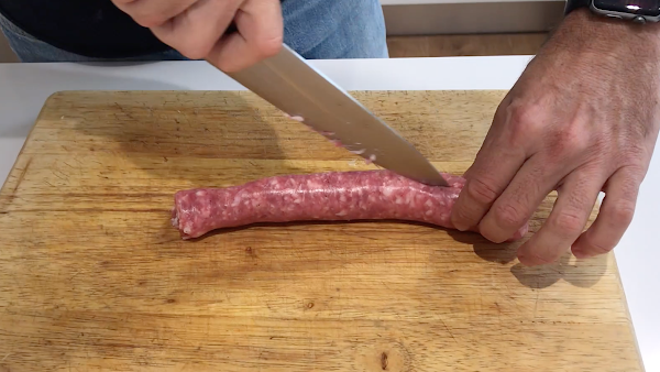 Retiramos la tripa de la longaniza.
