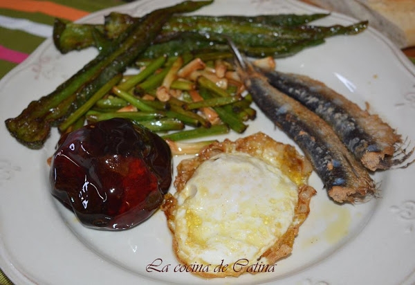 Freímos los huevos y en una sartén aparte freímos las sardinas de bota.