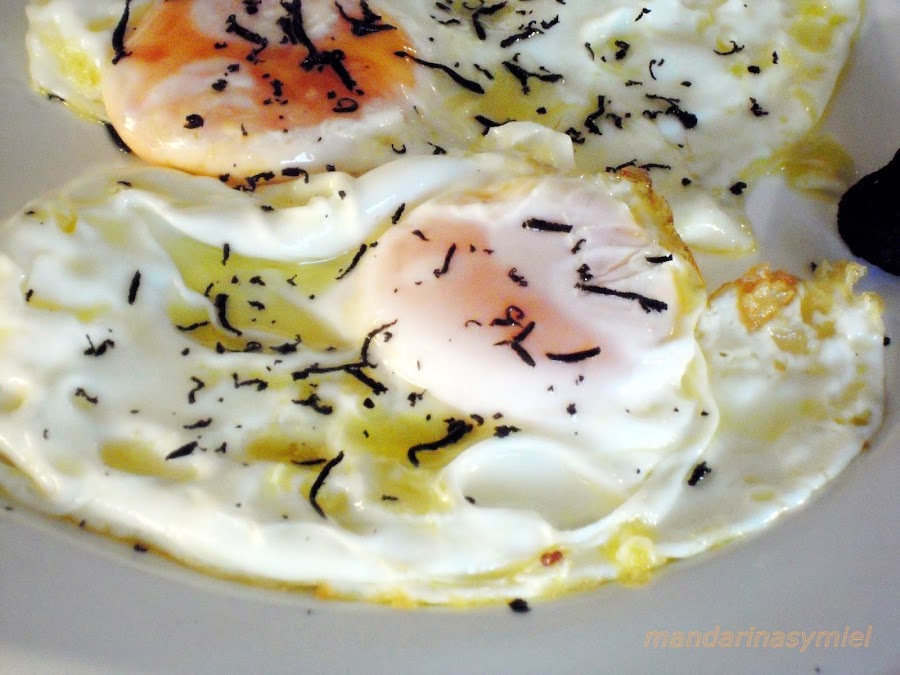 No voy a descubrir nada si te digo que no hay receta más simple y sencilla, pero a la vez deliciosa, que unos huevos fritos, pero si le añades unas virutas de trufa......se transforma en una delicatessen!!