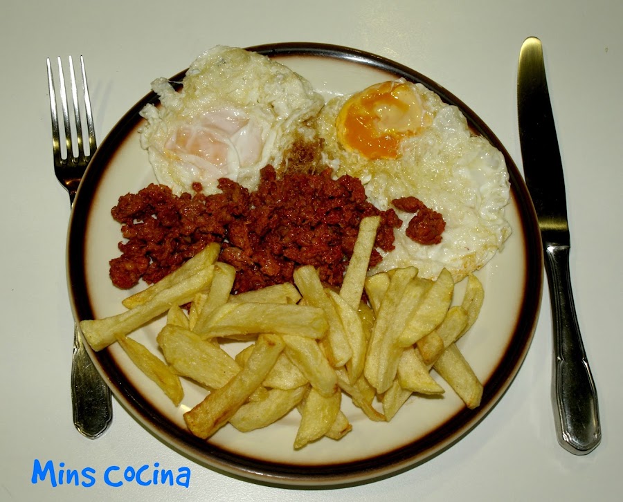 Por si alguno no lo sabéis, la zorza es como se denomina en Galicia al relleno del chorizo, ese tipo de carne. Lo que en La Mancha y muchas otras regiones se conoce como picadillo. Yo creo que es algo más magra que el relleno del chorizo, no me parece tan grasa, pero es de ese estilo, sabe parecido. Está riquísima! Y con unas buenas patatas y unos deliciosos huevos fritos forman un plato combinado superior. Eso sí, no muy a menudo que la liamos! ;)