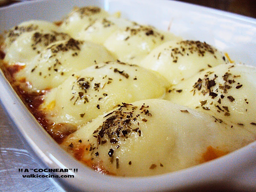 Sólo nos queda introducir en el horno a 220º, en una posición alta y esperar unos minutos a que el queso funda: