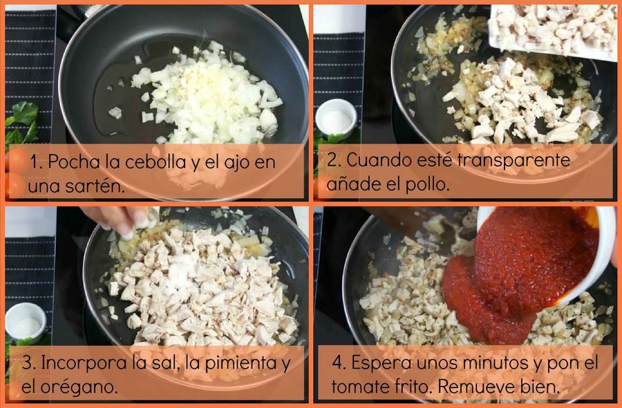 Para hacerlo necesitarás los siguientes ingredientes:- 200 gr. de pechuga de pollo cocida o asada.