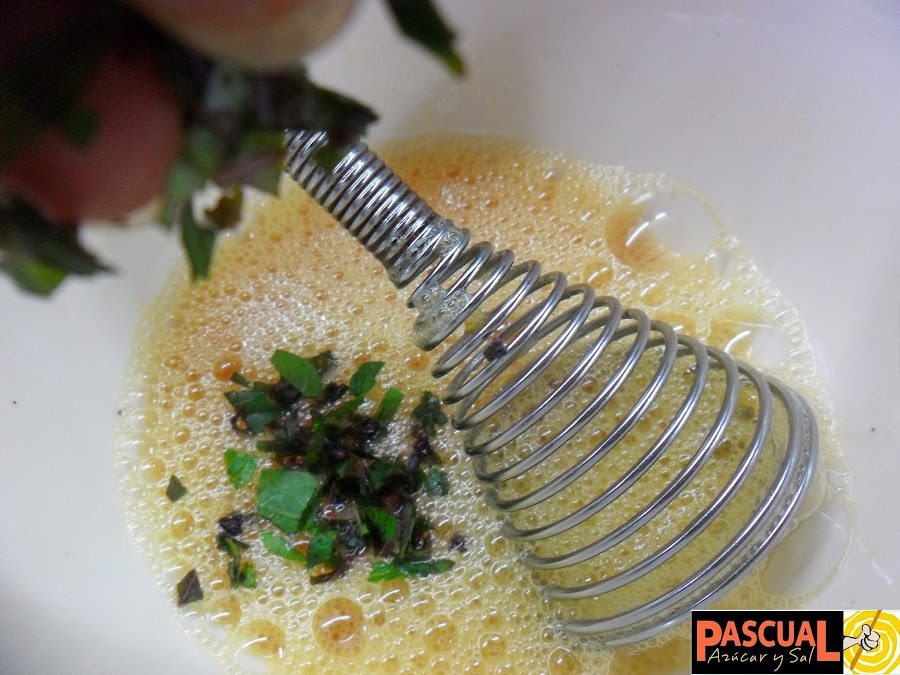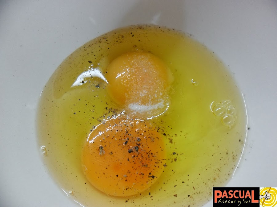 · Ponga a os huevos sal y pimienta al gusto y batalos muy bien, hasta formar espuma.