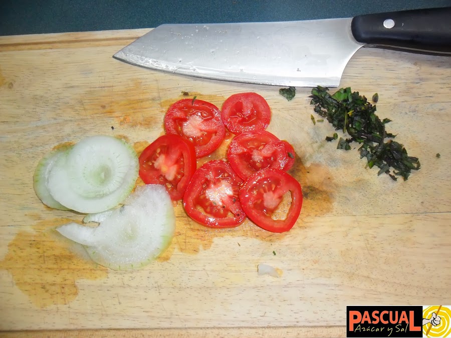 · Corte la cebolla también en rodajas no muy gruesas