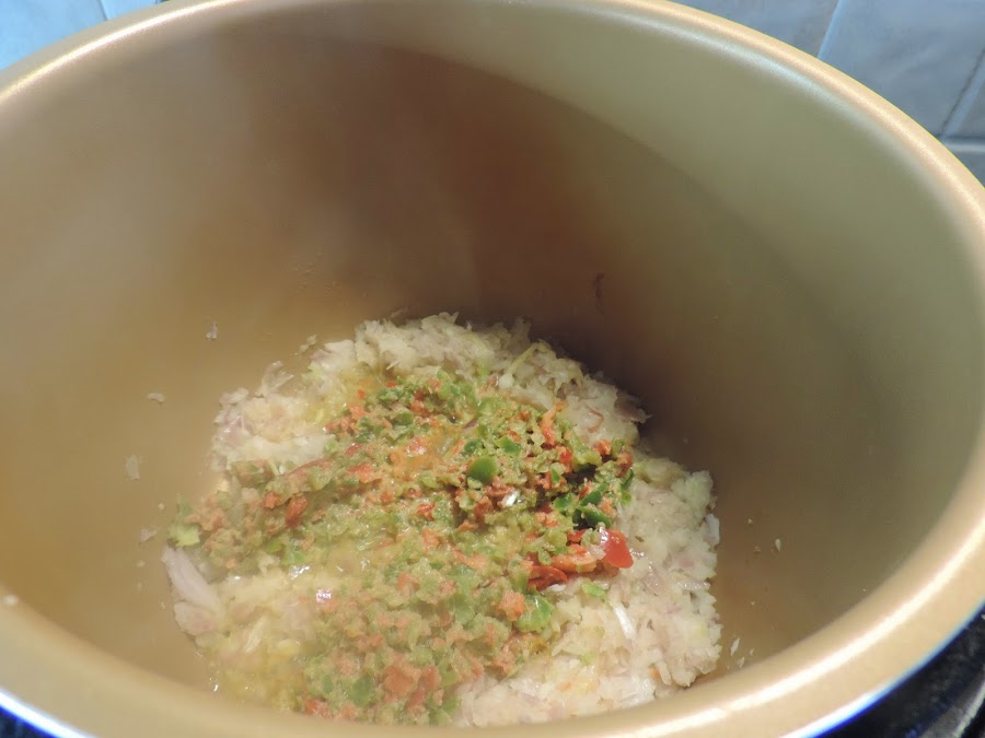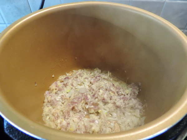 Ponemos un poco la mantequilla en la cubeta de la olla.