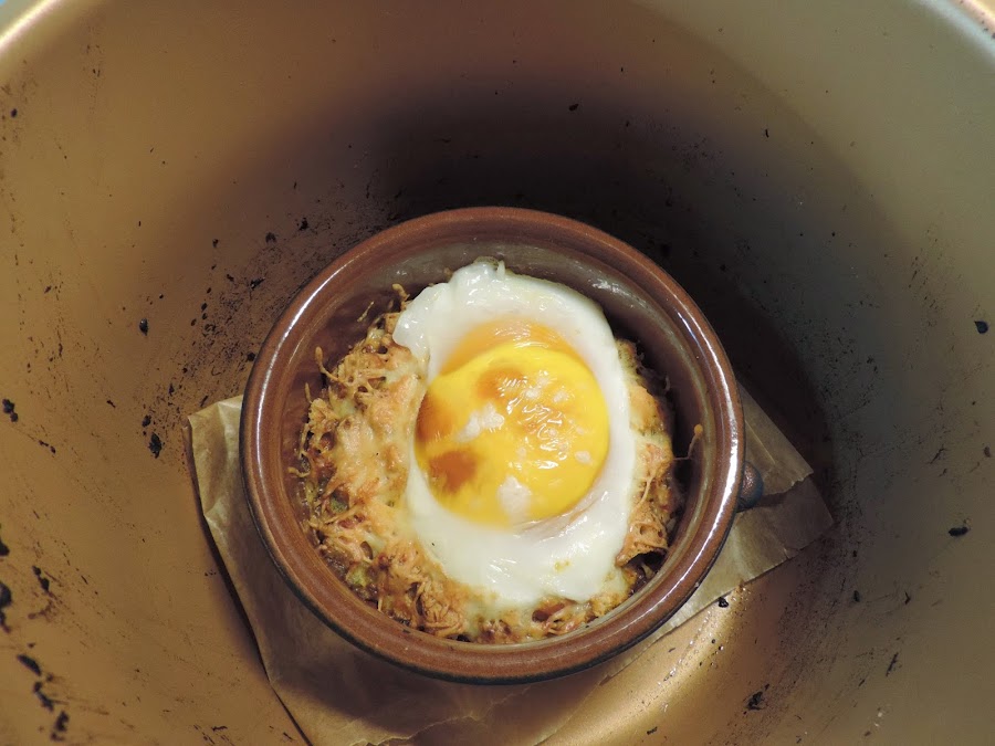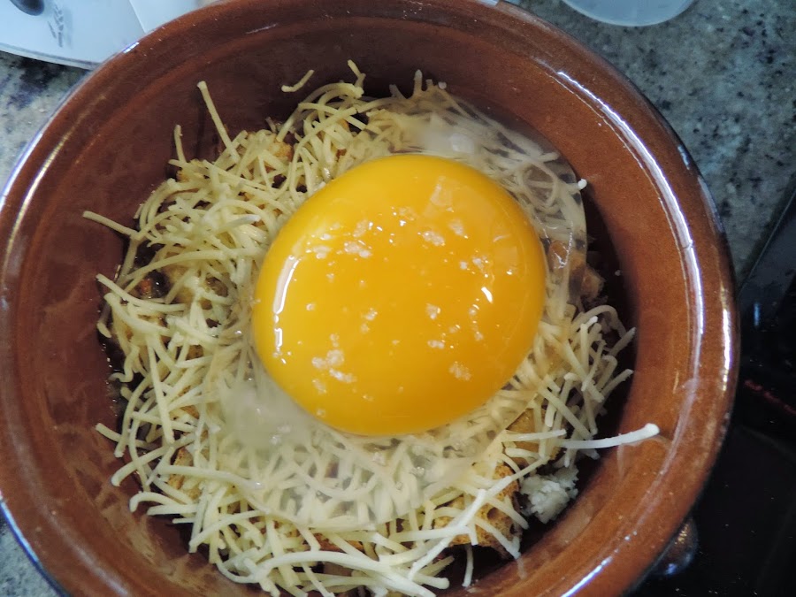 Este lo mejor hubiera sido dejarlo dentro del plato de barro y comerlo hay directamente, pero para hacer la foto y compararlos lo he sacado.