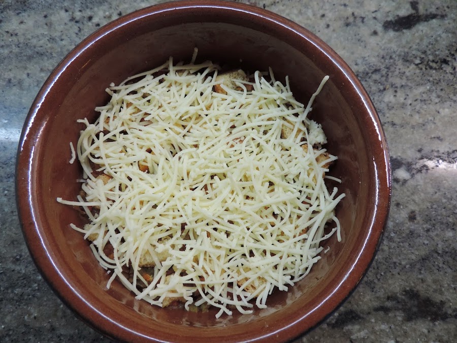 EL pan tostado en trozos encima.