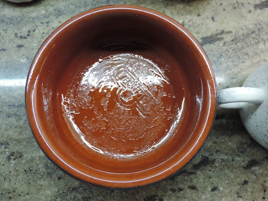He untado un poco de aceite en un plato de barro.