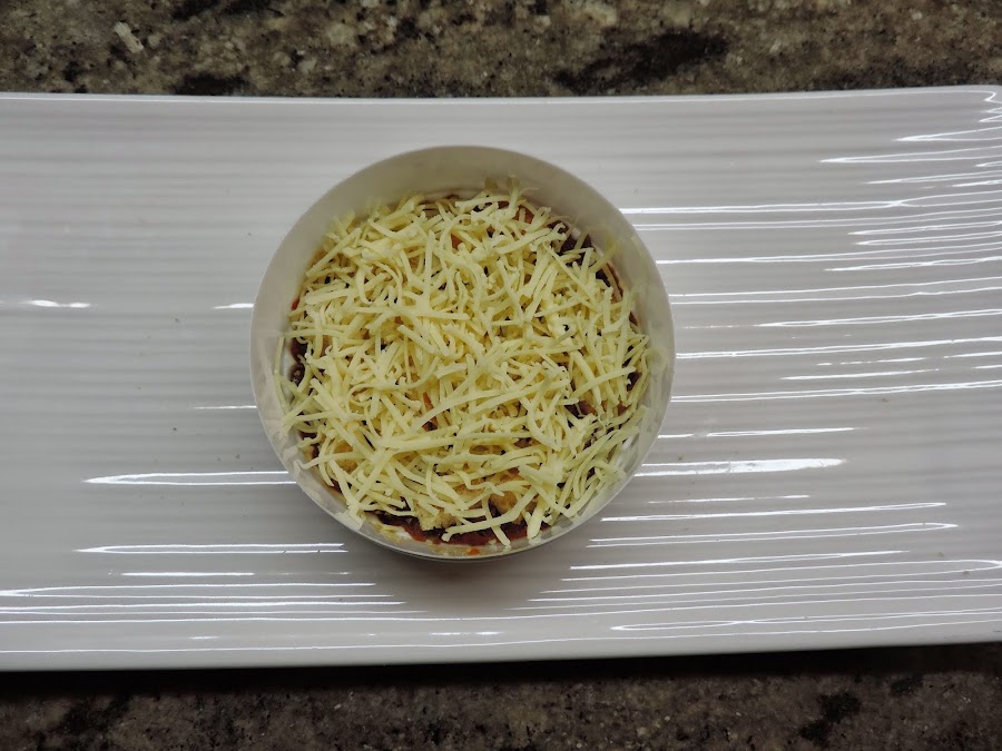 Y con cuidado lo echamos encima del queso rallado.