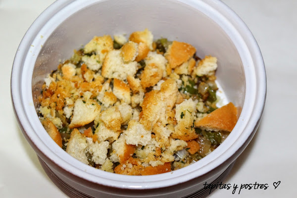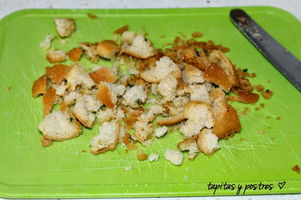 Trocear el panecillo tostado.