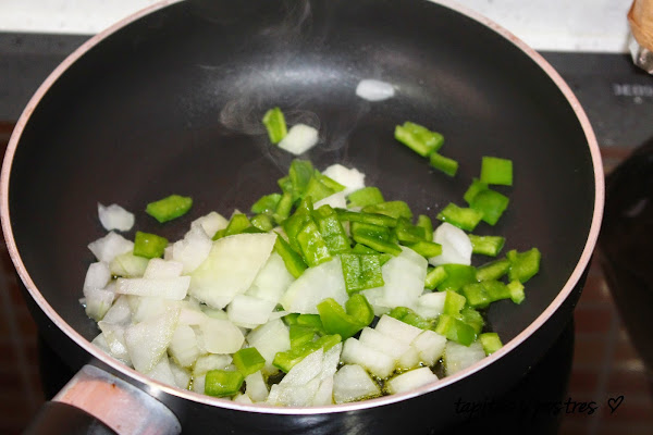 Lo sofreímos con un poquito de aceite. Hasta que lo veamos bien pochado.