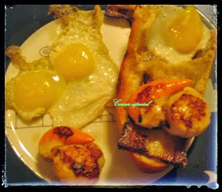 Y qué os parece a continuación una tosta? Pero no una simple tosta, si no una con vieiras y huevos. Una receta sencilla a la par que gustosa. Ummmm, quiero probarla !!! El plato es de Rosa de Comer Especial.