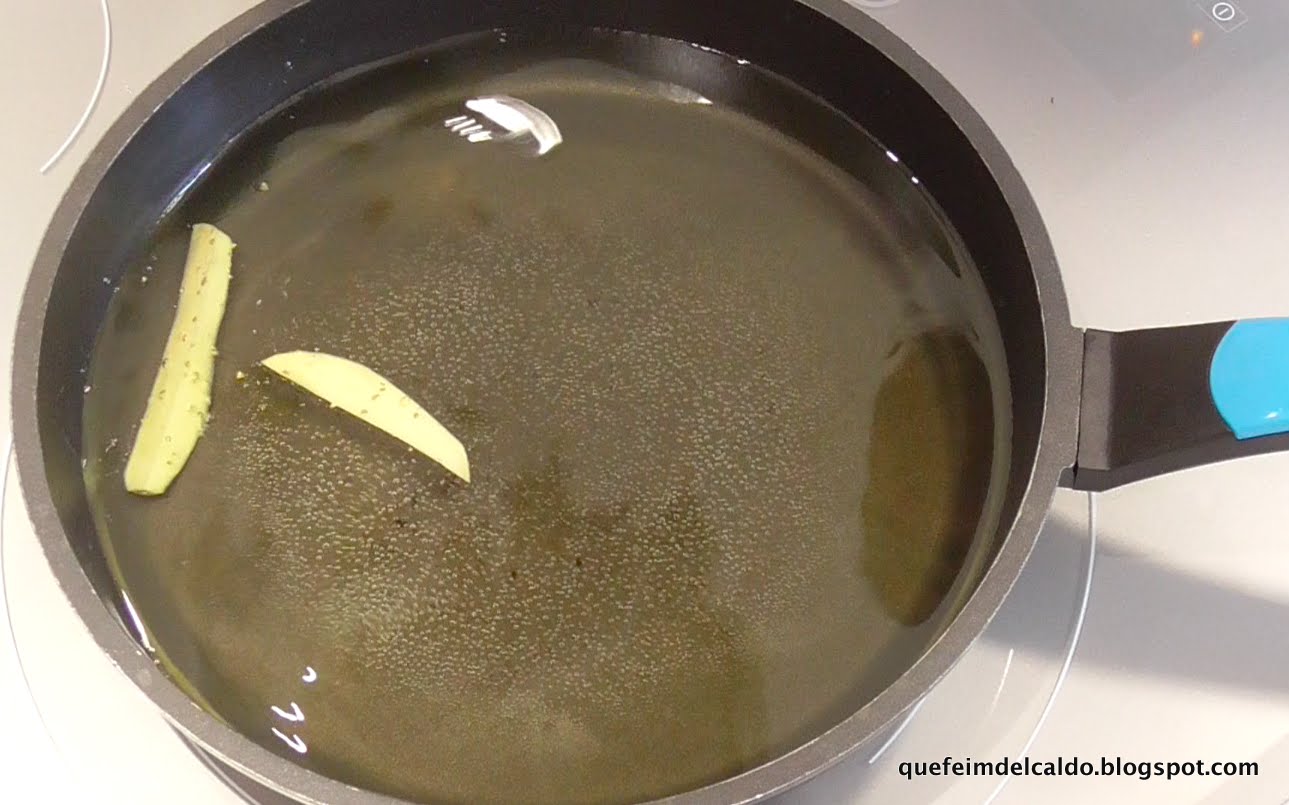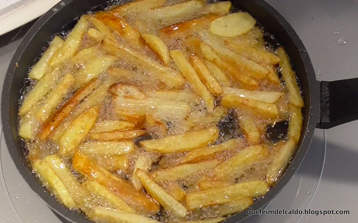 Para comprobar si el aceite está caliente ponemos unas patatas en el aceite, cuando empieza a chipotear estará en su punto.