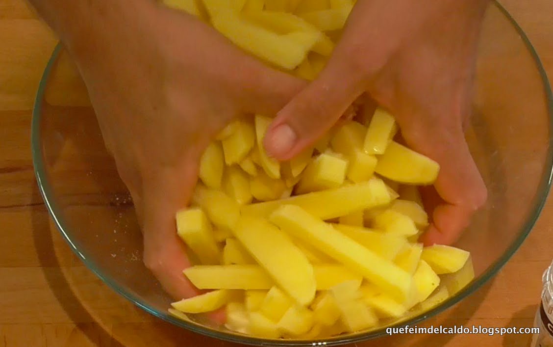 Cortamos las patatas en bastones de aproximadamente medio centímetro.