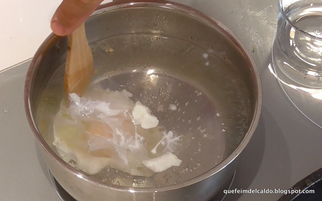 Trasncurrido el tiempo y con la ayuda de una espumadera retiramos el huevo del agua.
