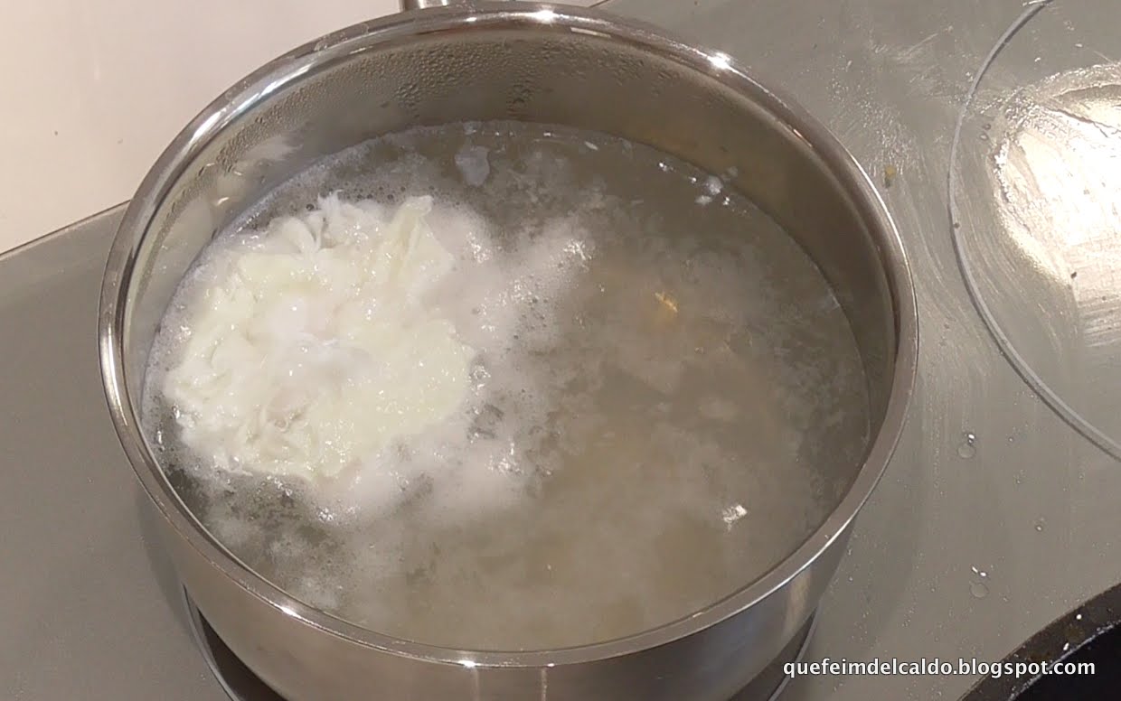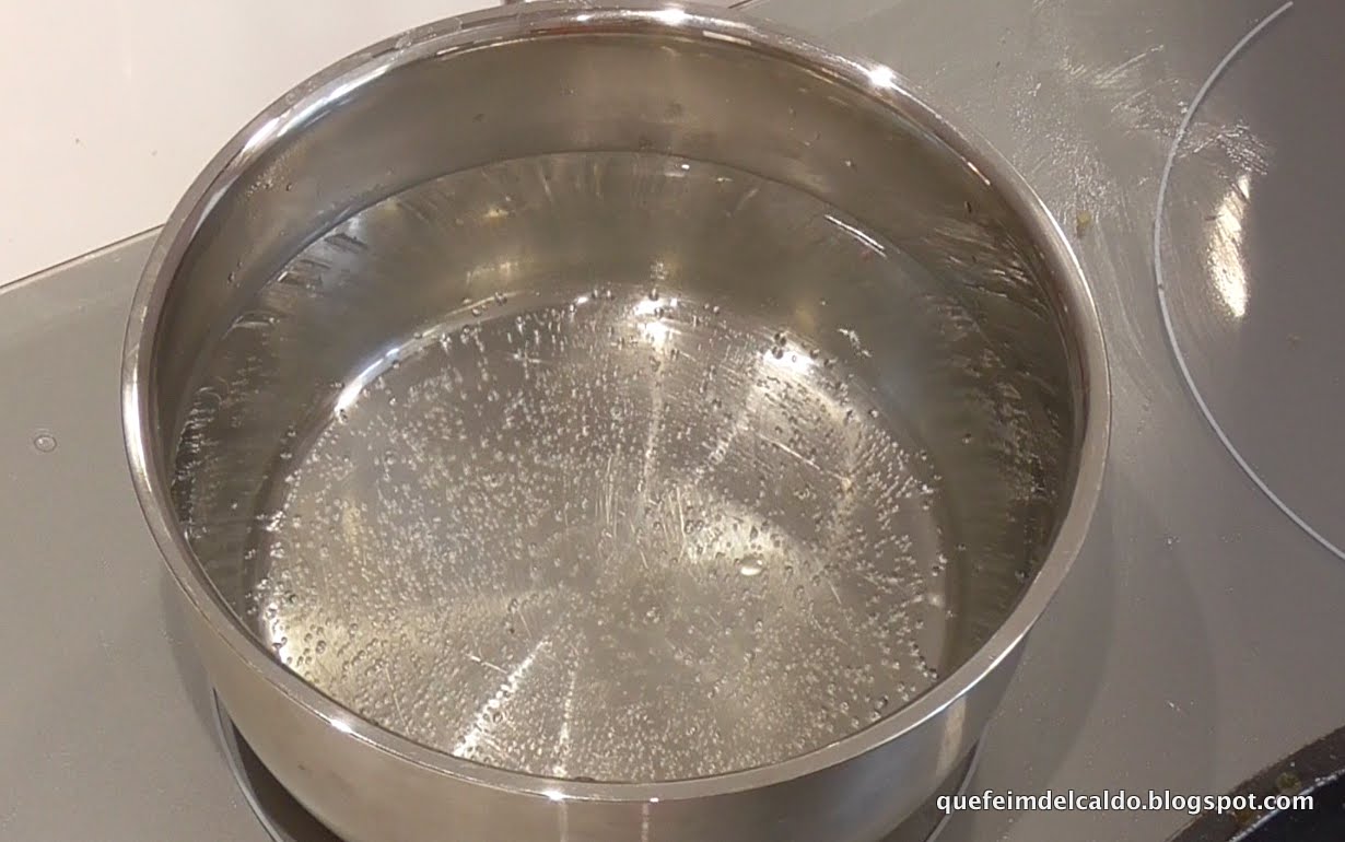 Llevamos a ebullición y cuando empieza a hervir fuerte bajamos el fuego a 4-9, el agua tiene que estar a punto de ebullición pero en ningún momento tiene que hervir.