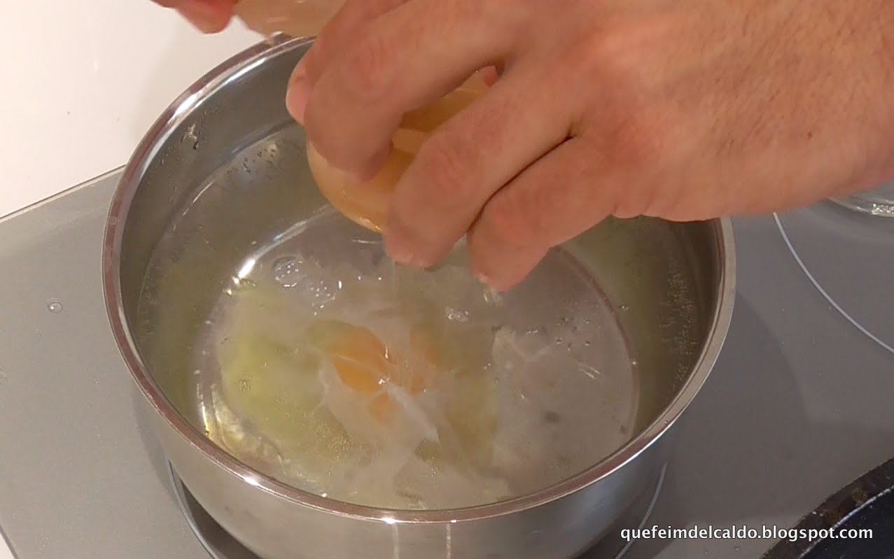 Cascamos el huevo con mucho cuidado y lo incorporamos al agua caliente.