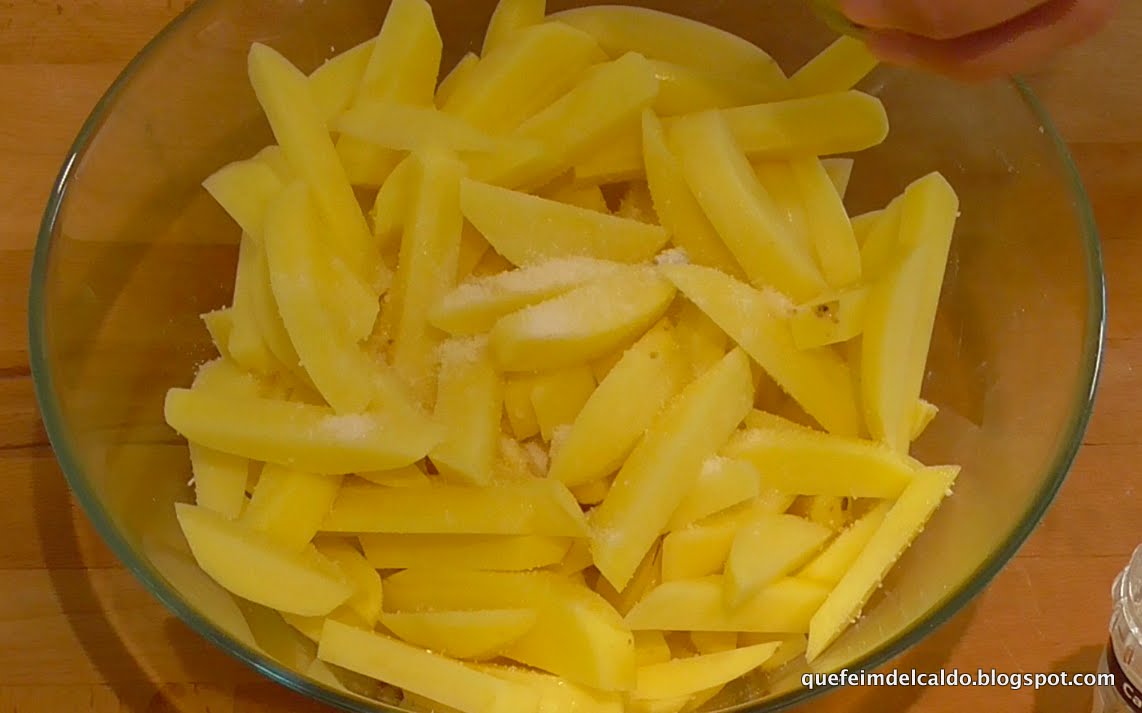 Una vez cortadas todas las patatas las ponemos en un bol, le añadimos sal.