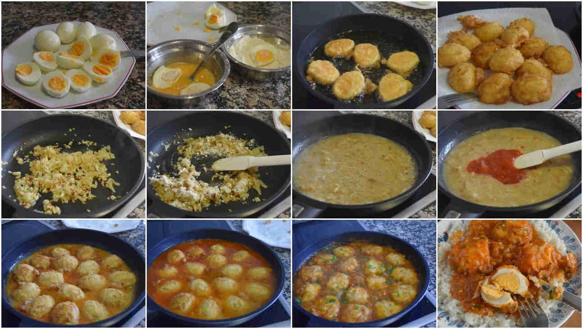 Dificultad: muy fácil Raciones: 16 unidades Tiempo: 45 minutosIngredientes de los huevos rebozados en salsa: