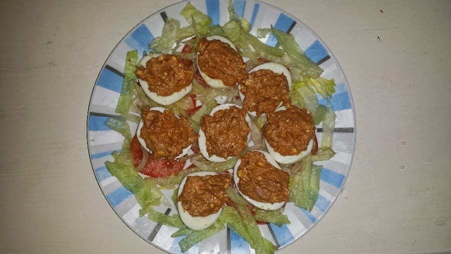 UNA VEZ COCIDOS Y ENFRIADOS, PARTIRLOS AL MEDIO Y VACIARLES LA YEMA Y APARTAR.