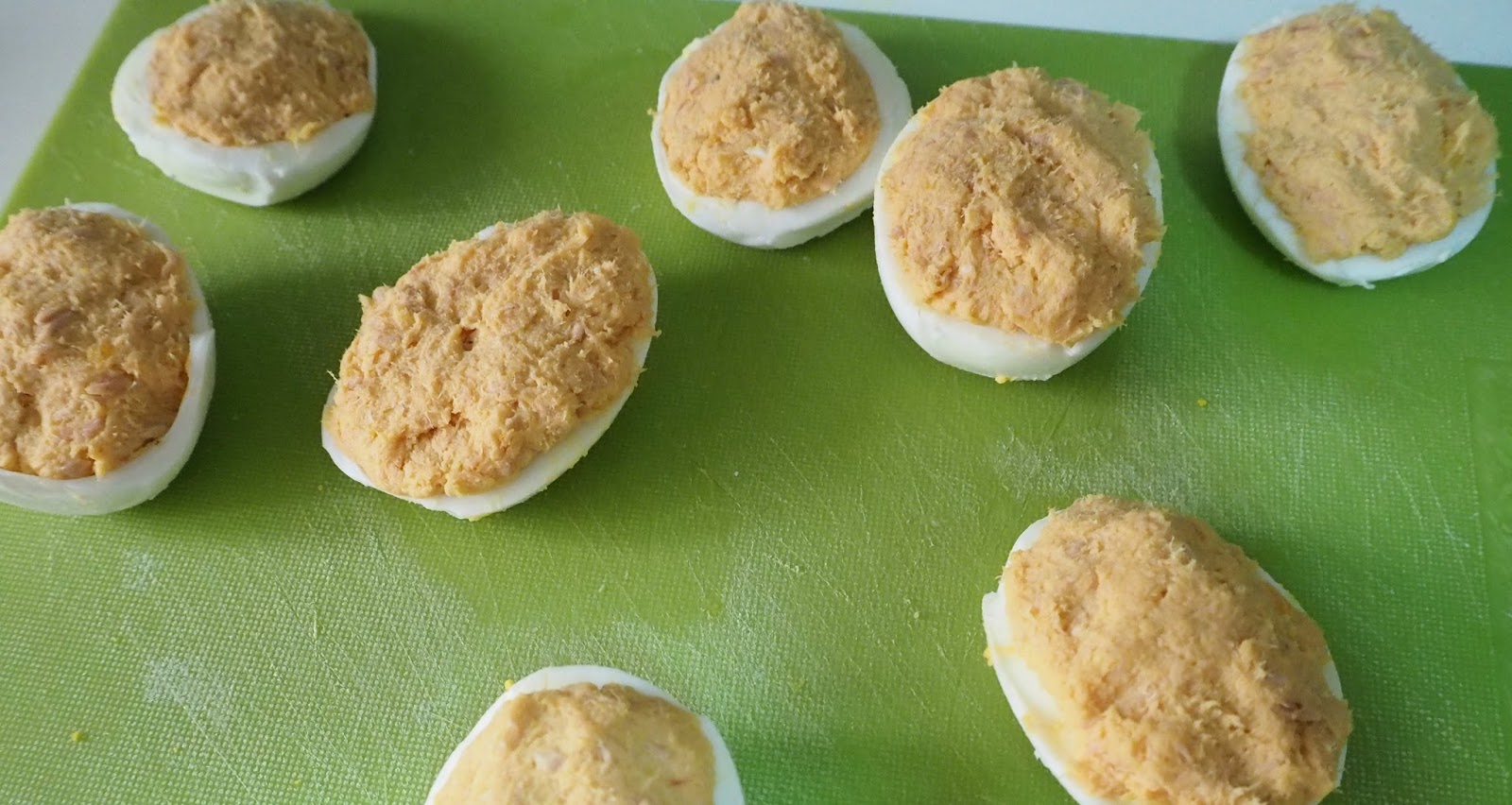 En casa nos encantan los huevos, especialmente para cenar: en tortilla, cocidos, revueltos, fritos... y desde hoy rellenos. A pesar de lo fáciles que son de hacer nunca antes los había preparado aunque hacía tiempo que me apetecía. Por fin, los hice y quedamos encantados. Los huevos admiten lo que sea. Se pueden rellenar de mil cosas diferentes y hacer en frío o en caliente. Para esta ocasión yo elegí una receta básica, en frío, que es lo que apetece. A pesar de los pocos ingredientes quedan fantásticos, y es que no hace falta más que un poco de atún y mayonesa para cenar un plato digno del más exigente. De verdad, buenísimos. No podéis dejar de probarlos!