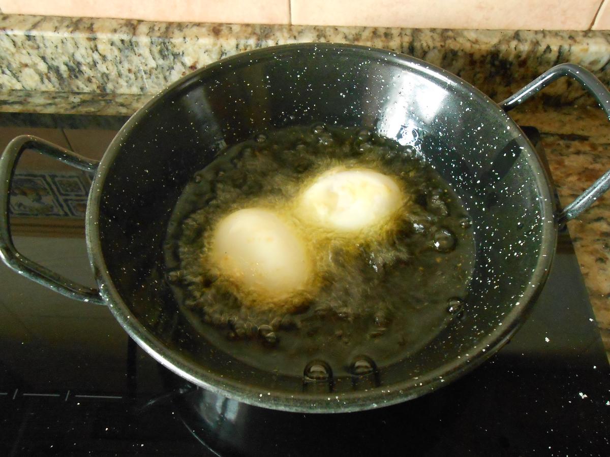 Freir en abundante aceite de oliva virgen, pero sólo la parte de la bechamel.