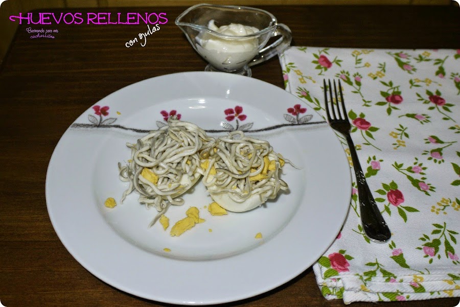 Esta vez los he rellenado con angulas sucedáneas a petición del cachorrito mayor que las adora y un día me dijo que hacía mucho que no las comía.