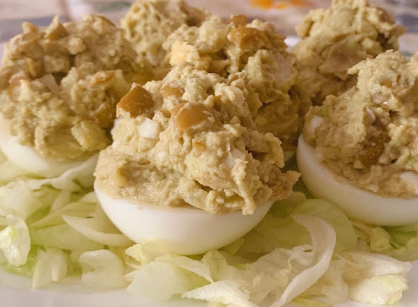 Rellenamos los huevos y los colocamos sobre la lechuga.