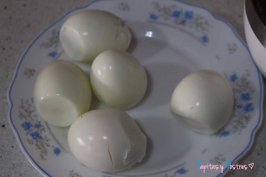 Cocemos los huevos y cuando estén frios los pelamos.