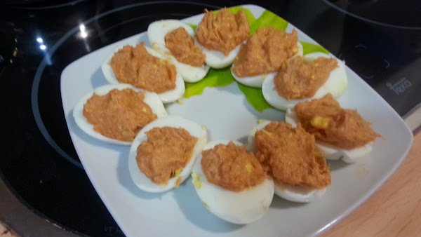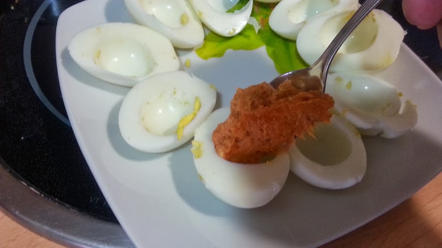 empezamos a rellenar los huevos con esa mezcla