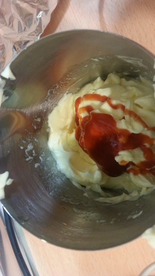 cuando ya este lista, probar de sal y echais el ketchup y lo meneáis hasta que quede todo rosa. los hay que le echan un poco de cointreau a la salsa pero a mi no me gusta el alchool