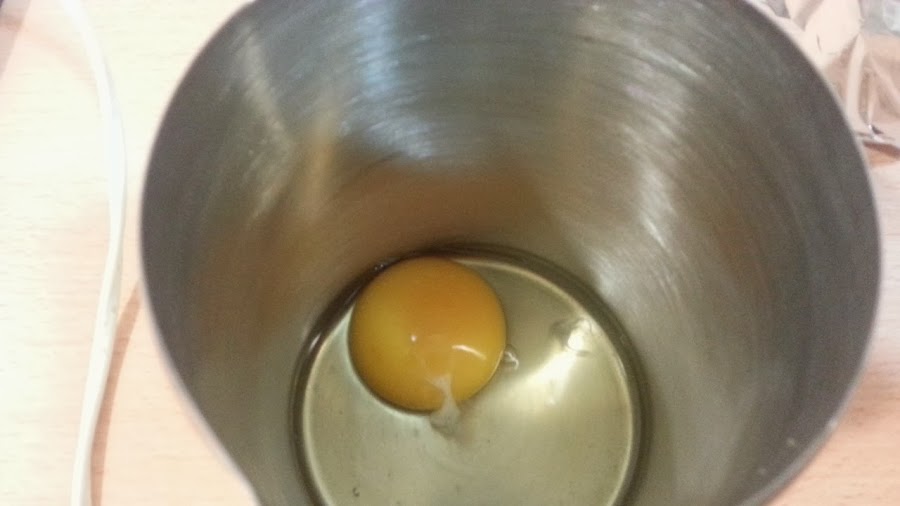 En un vaso profundo, de esos de la batidora, echamos un huevo y una pizca de sal