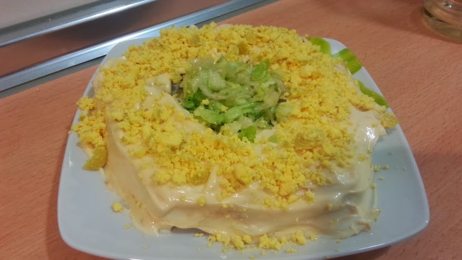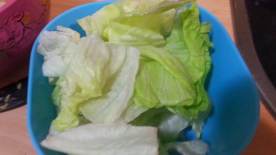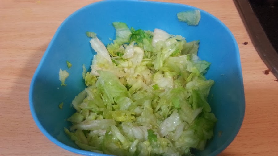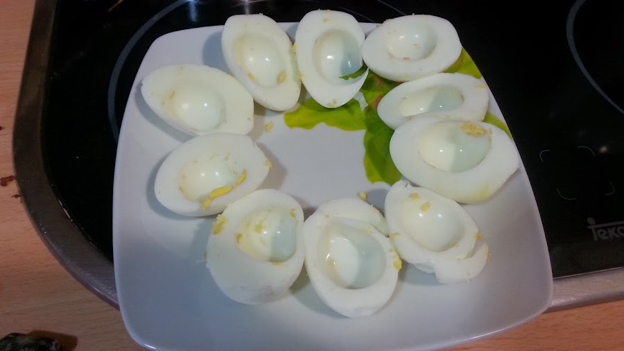 echais la salsa encima de los huevos, poneis la lechuga en el medio y la aliñais con sal, aceite y vinagre o como mas os guste