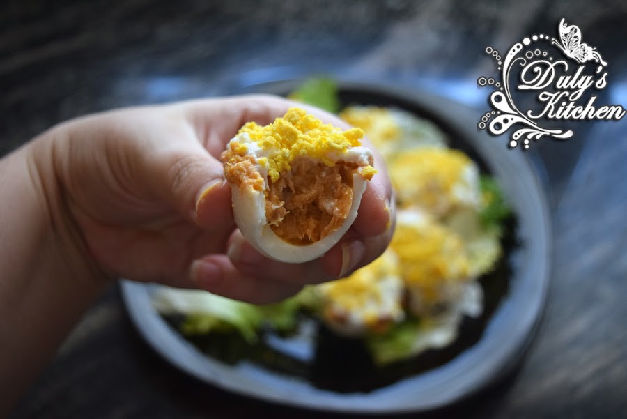 4. Se rellenarán los huevos con la mezcla, hasta que queden bien cubiertos.