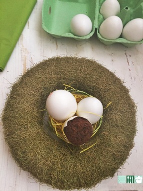 * O bien presentarlos como si estuvieran en un nido, yo tenía una corona verde y los coloqué en el centro.