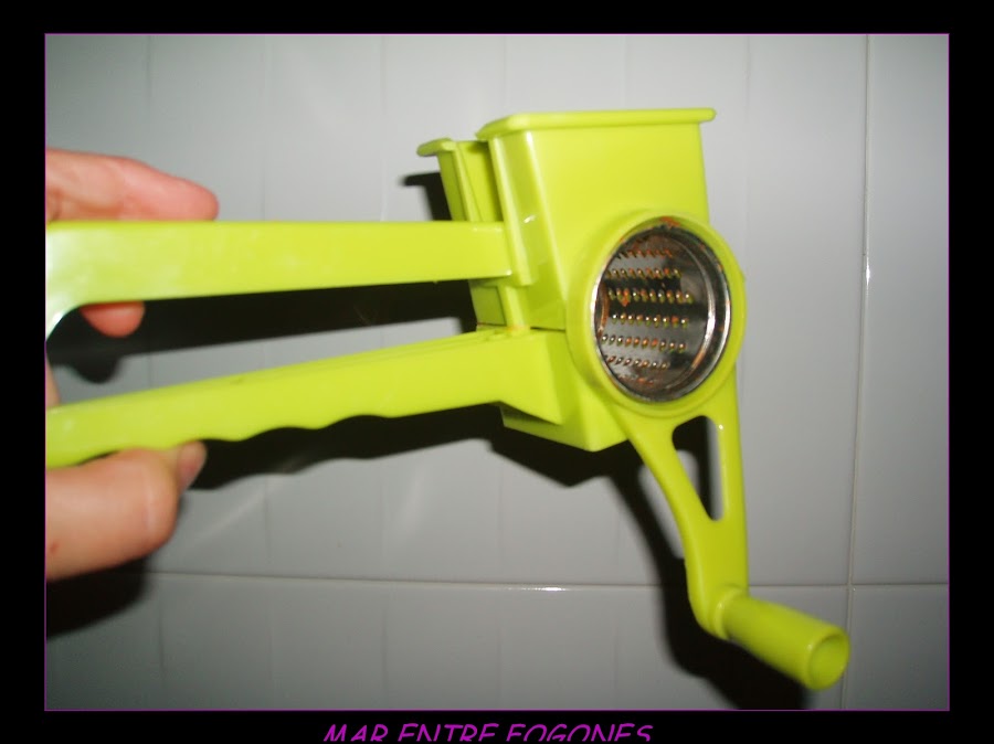 Cuando hemos terminado de rellenar los huevos metemos las yemas en el aparato de la foto, le damos a la manivela y decoramos los huevos con las yemas.