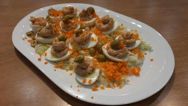 3. Corte los huevos por la mitad longitudinalmente, separe las yemas de las claras y reserve.